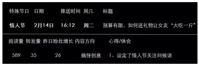2、日期/推送时间/周几,为什么把时间记录的这么详细呢?在通过的一些测试中发现,推送时间似乎变的不重要,也就是说你认为的早上9点钟比下午4点钟效果好,但是你发现如果你的选题做的好,任何时间的推送似乎都能获得比较多的阅读。